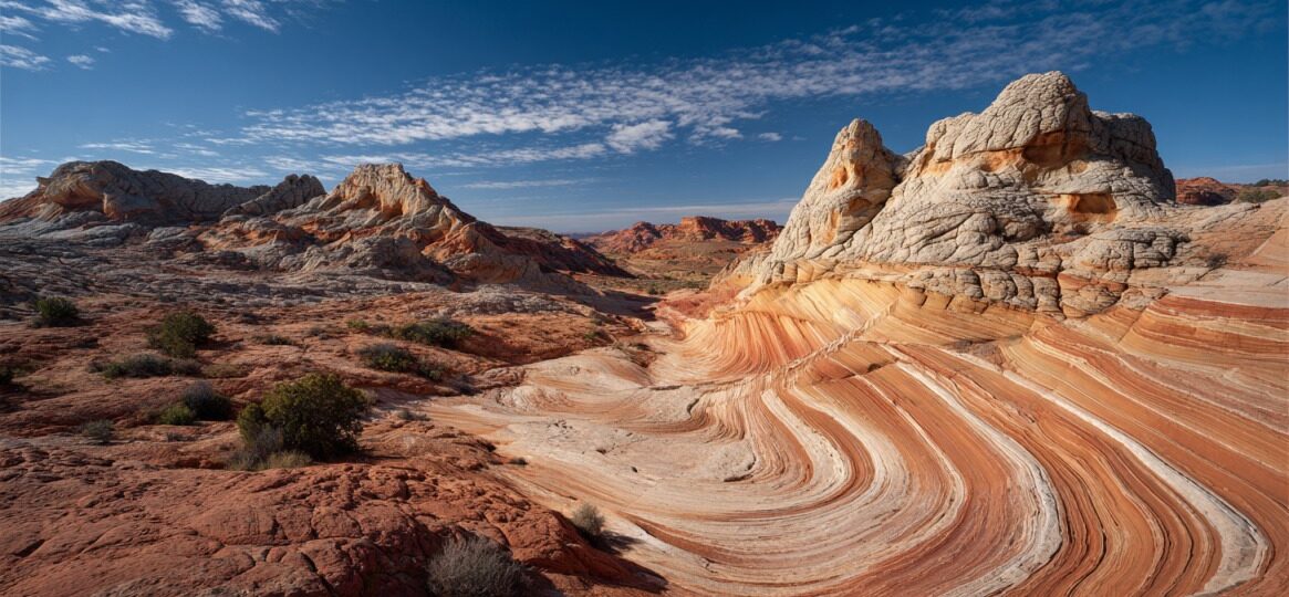 Considered the crown jewel of Vermilion Cliffs, The Wave features swirling ribbons of red, orange, and yellow sandstone that seem almost painted by hand.